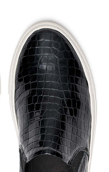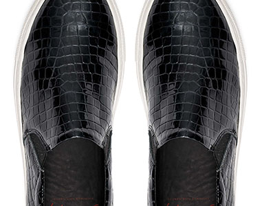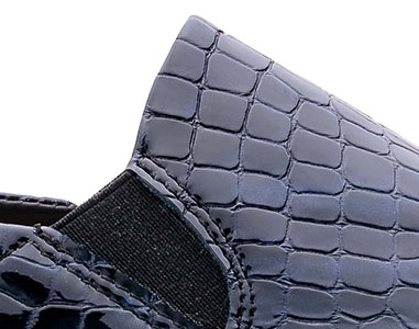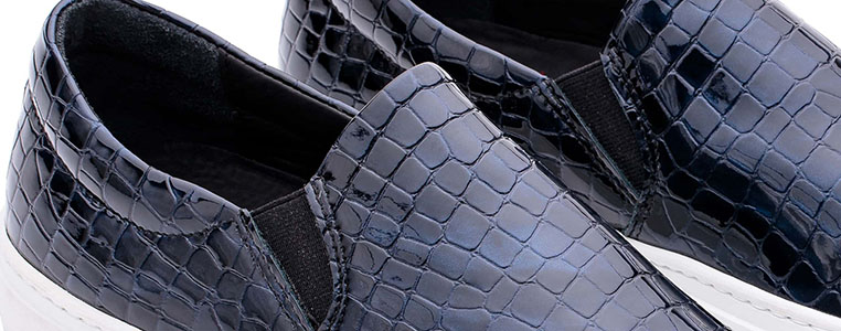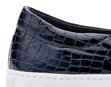Bouchamaoui é o modelo slip on produzido em pele genuína, com acabamento em verniz croco azul marinho. Excelente opção para combinar com jeans. Práticos, minimalistas para um outfit moderno e elegante.