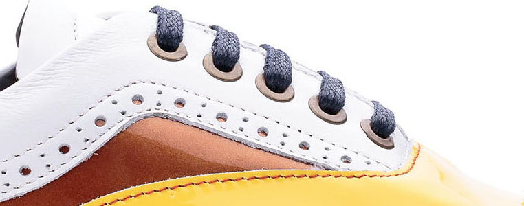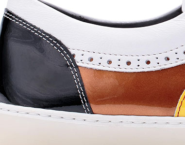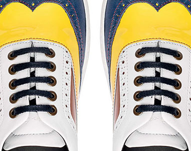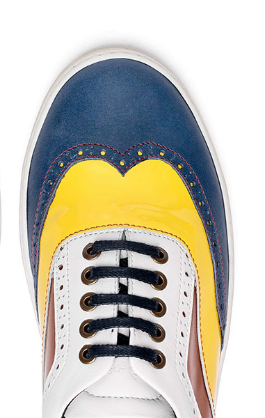 Einstein é uma sapatilha modelo wingtip oxford produzido em pele genuína. Uma sapatilha multicolor, combinando 5 cores, azul, verniz amarelo, verniz cobre, branco e verniz preto. Proporciona um outfit criativo, inovador e ousado.