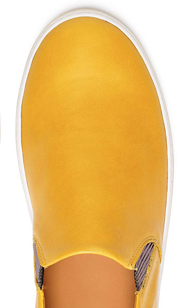 Malcom X é o modelo slip on produzido em pele genuína, de cor amarelo canário e elásticos canelados, prateados. Excelente opção para combinar com tons cinza, preto, branco ou azul. Criará destaque num outfit básico.