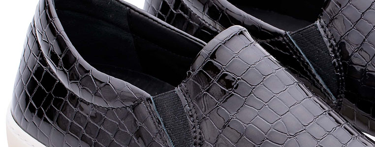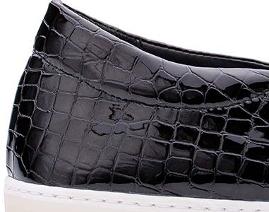 Muhammad Ali é o modelo slip on produzido em pele genuína, com acabamento em verniz croco verde escuro. Um slip on sóbrio, elegante que singularizará diferentes outfits.