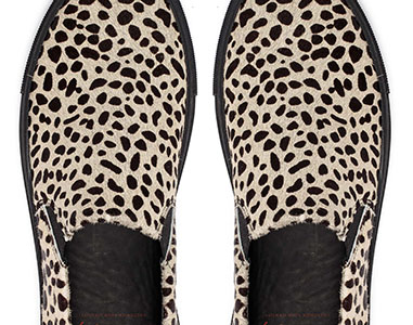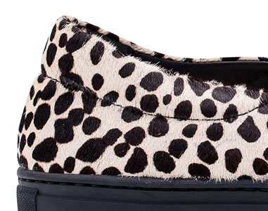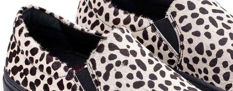 Muta Maathai é o modelo slip on produzido em pele, com textura em pêlo preto e branco, contrastando com a sola preta. Um slip on exótico, atrevido que catalisará o teu outfit.